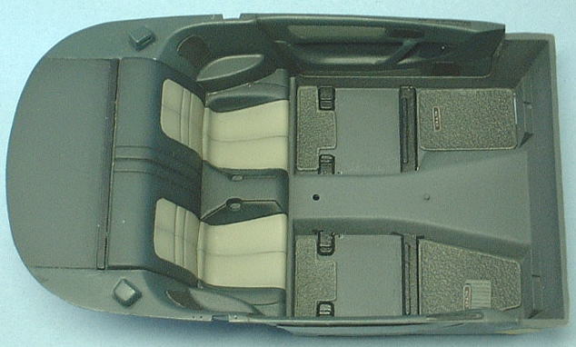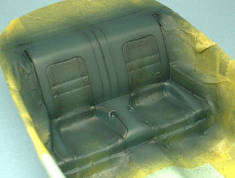 I masked rear seat with masking tape, and airbrushed side panels and trunk cover in dark gray.