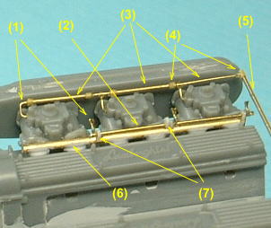 the center of V-bank, after I painted engine. Those were made with brass