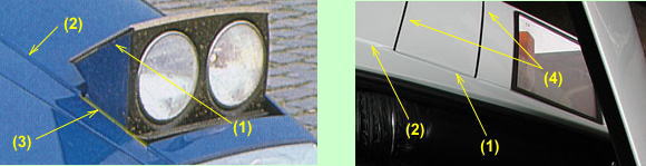 - (3). This yellow part is inside a little than the line of (2). When headlights