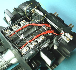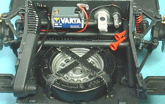 The mounting parts for wheels have 5 bolts. Wheels are fixed to the mounting parts with those. However, those are a meager durability that have broken if those were touched. I exchanged them to 0.8 mm brass line. I expanded the aperture of the holes of wheel. because the diameter of bolts were increased.