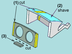(1). I cut the yellow place to make the headlight parts to that holes same