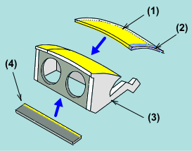 I glued 2 parts in this stepping. Therefore the headlight lenses will be