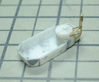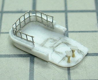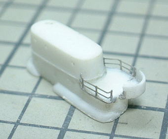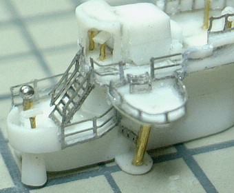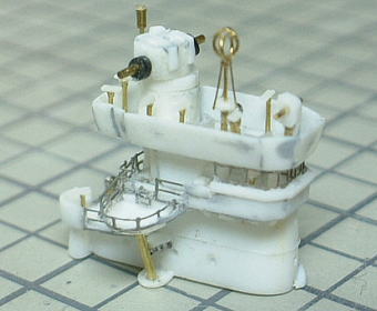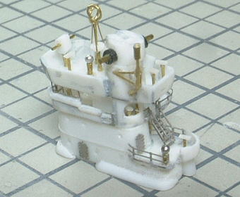 Compass bridge was build of a plastic sheet. windows are photoetch "AE-18 Metal Mesh Square 09" from FineMolds. I put 2 naval binoculars in the after floor. They were