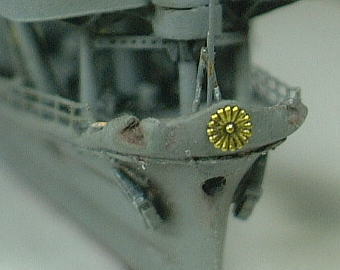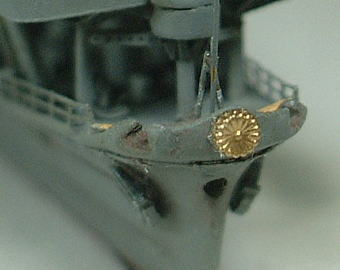 the Imperial crest (depicting a chrysanthemum with sixteen open petals) was attached to the bow of the IJN warships. It is a symbol of Imperial Japan, and is the good point of ships model. But the Imperial crest part of 1/700 scale ships model is too thick. It is like an bottle cap. If this part is modified thinly, it will become cool.