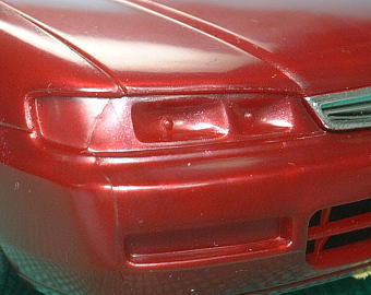 上半分のボジションョンランプとターンシグナルランプの部分の内側に離型剤代わりにグリスを塗り、エポキシパテを埋めます。