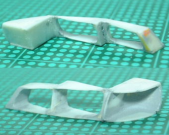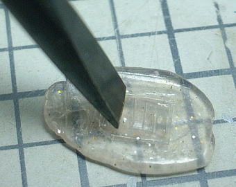 硬化後パテを取り出してリフレクター部分を下書きします。上下が断ち切れてるデザインなので、造形しやすいようにパテを足しました。