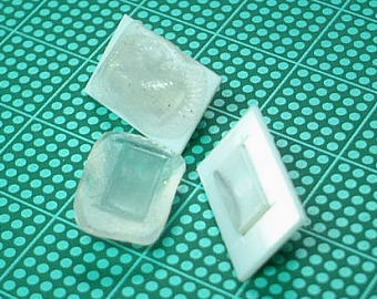まずはダイヤモンドカットの入っていない普通のリフレクター(反射鏡)をプラ板で作り、プラ板で枠を作ってそこに固定します。ロービームとハイビームでは形状が違うので2種類制作。