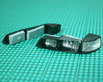 実車のヘッドライトユニットはポジションランプがセパレートになっており、この自作パーツでも同様に別に作って後からくっ付けてます。