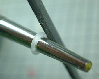 プラパイプを輪切りにし、角をヤスリで削り落とします。