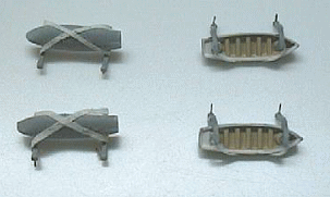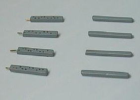 艦首のはエッジを丸くしてやり、艦尾のは穴をあけておきますが、うっかり前と後の支柱の穴のパターンを逆さまにしてしまいました。