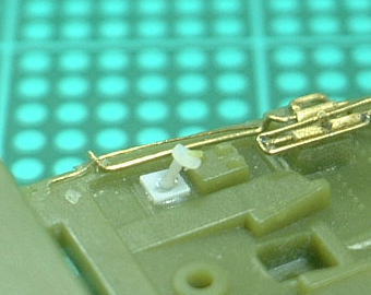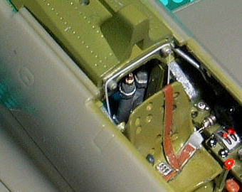 座席右側の床にある応急手動油圧ポンプとその配管が省略されているので、真鍮パイプと真鍮線を組み合わせて再現しました。