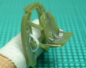 シート右側の座高調整レバーのパーツはあまりにもゴツいので、プラシートと真鍮線で自作しました。