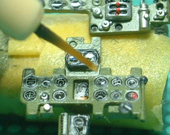 なんだかメーターのモールドがデカールに比べて小さいなあと思っていたのですが、よく見るとなんとそれらはメーターのフレーム内の直径と合うように設計されていたのです。つまりデカール軟化剤を使って正確にフィットさせれば、実物と同じくメーターの内側のみが凹モールド内に、フレームが外側に張り付くようになっている・・・恐るべしファインモールド!
