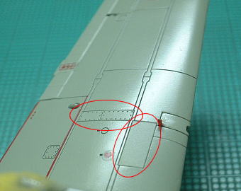 赤い丸枠内のパネルとエルロンのみがつや消しになってるのがわかるでしょうか?