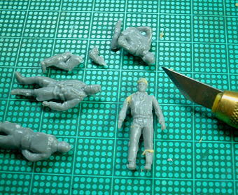 それぞれのフィギュアをバラバラに切り刻み(ギャー!)、そこから使えそうな部分を見繕ってポーズのない素のフィギュアを1体作ります。