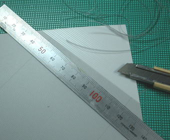 まずプラ板にスクリーントーンをガイドにして木甲板の溝を彫ります。