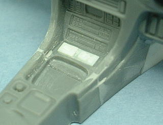 カーコンポ下のコンソールにはアクティブエアロやドアミラーなどのスイッチパネルがあるのですが、キットでは省略されていますのでプラ板でそれっぽく再現しました。