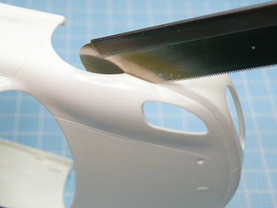 まずはフロントフェンダーとフロントバンパーの間にハイパーカットソーを使って切れ目を入れます。