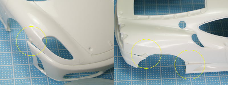 フロントバンパーの形状も違いますので、フェンダー改造と一緒にこっちも改造します。