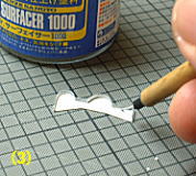 なお、シールド付高角砲座は、作業手順の関係からこのパートではまだ取り付けません。 それとこの辺りから表面処理の様子見のため、仮組部品は一度外してサーフェイサーを薄く吹いてやりました。