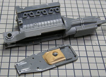 そこで先にフレームを組んで合わせ目を消してやり、エンジンを後ハメできるように後部フレームを取り外し可能に加工してやりました。一緒にどぎついバリも処理してやります。
