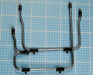 このキットは本来エンジンを組んでから鳥かご型のアルミパイプフレームをそのまわりに囲うようにして組み立てるのですが、パーツの合いがあまりに悪くて隙間だらけな上に水平・垂直が正しく出てないので、そこをパテ埋めで修正すると、エンジンが邪魔で塗装が出来なくなります。