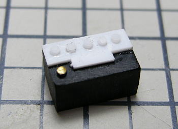 バッテリーの形状は決して間違いではないのですが、あっさりしていて見映えしないので、プラ材でディテール追加してやります。またマイナスターミナルは真鍮線に交換。