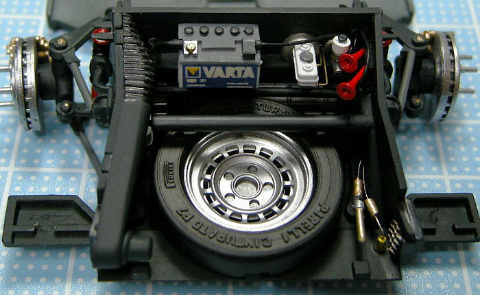 今回は中身のメカ関連の製作ですが、以前のカウンタックLP400Sで結構がんばった物を作ってしまってるので、今回も基本的にそれに準じた物でして、新たに手を加えた部分などを中心に解説します。