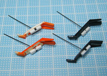 といった問題が出てきまして、自分用ならともかく人様に納める品としての品質を満たしていないと判断し、いつもどおりの純正ヒンジに金属線を仕込んで強度アップ程度に変更しました。無念・・・