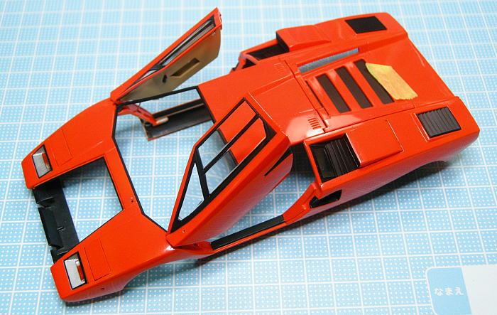 スイングアップドアに関しては新しい試みとして、開いたときに実車と同じく先端がフェンダー内に隠れるという、カウンタック大好きモデラーなら誰もが望んで止まないギミックを盛り込もうと考えていました。