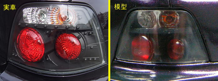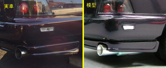 | 社外品リヤスカートと、マフラー「フジツボ パワーゲッター」再現。サイドマーカーランプは社外品のクリアータイプ再現。 |
