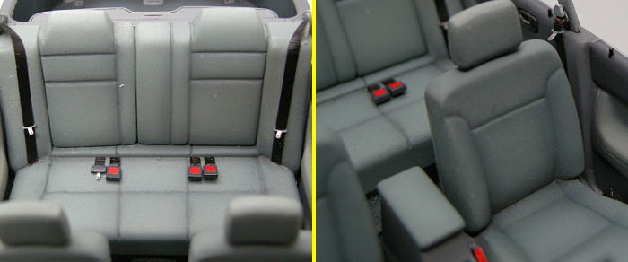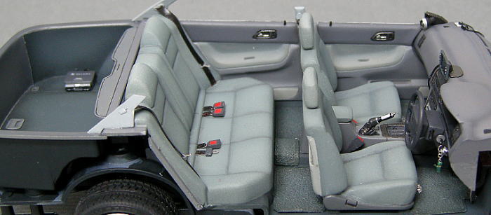 | シートベルトを前席、後席とも再現。2.2ViXなので2.2VTLに装備されている後席センターアムレストを廃し、背もたれの可倒は実車同様6:4分割を行った。 |