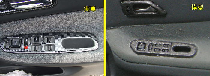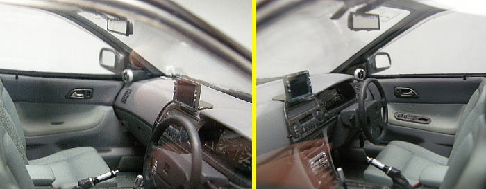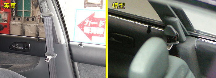 | 前席シートベルト&シートベルトアンカー再現、センターピラー内張り再現、ドアロックノブ再現、ウインドウ際の金属モール再現。 |