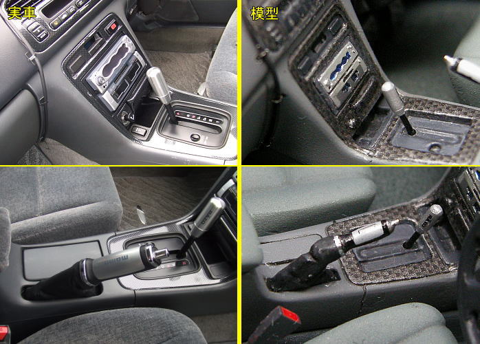| 2.2ViXには助手席エアバックが装備されていないので、キットのエアバッグのモールドを埋めて修正した。パネル各部のカーボン調カッティングシートは、デカールを貼った上からクリアコートし、研ぎ出しをかけてフィニッシュしている。ディスプレイケーブルは、押さえ金具の位置も再現。 |