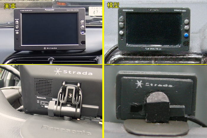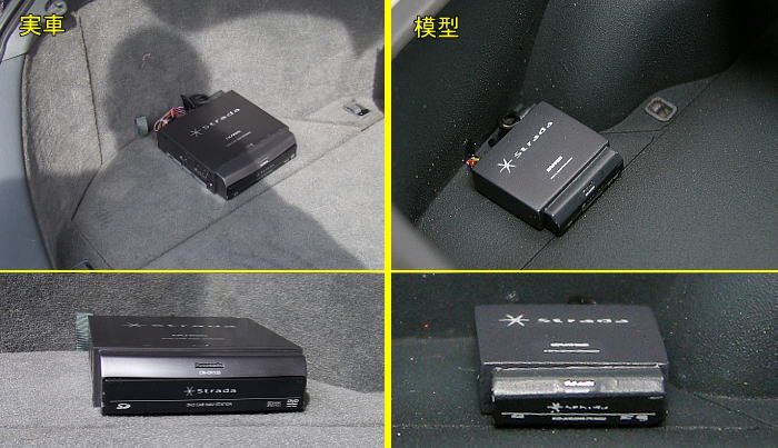 | カーゴルームに設置されたカーナビ本体Panasonic Strada CN-DV155FDを配線まで再現。 |