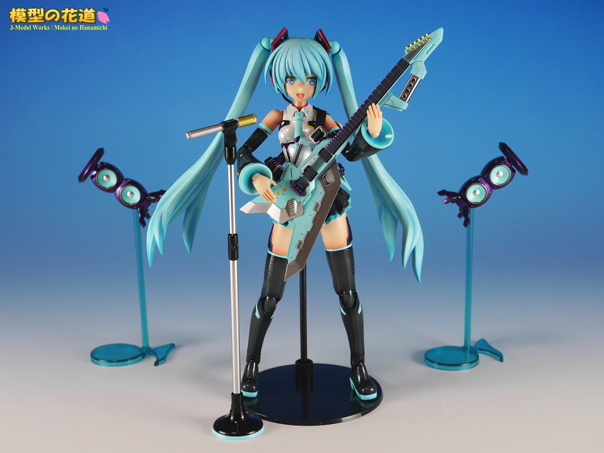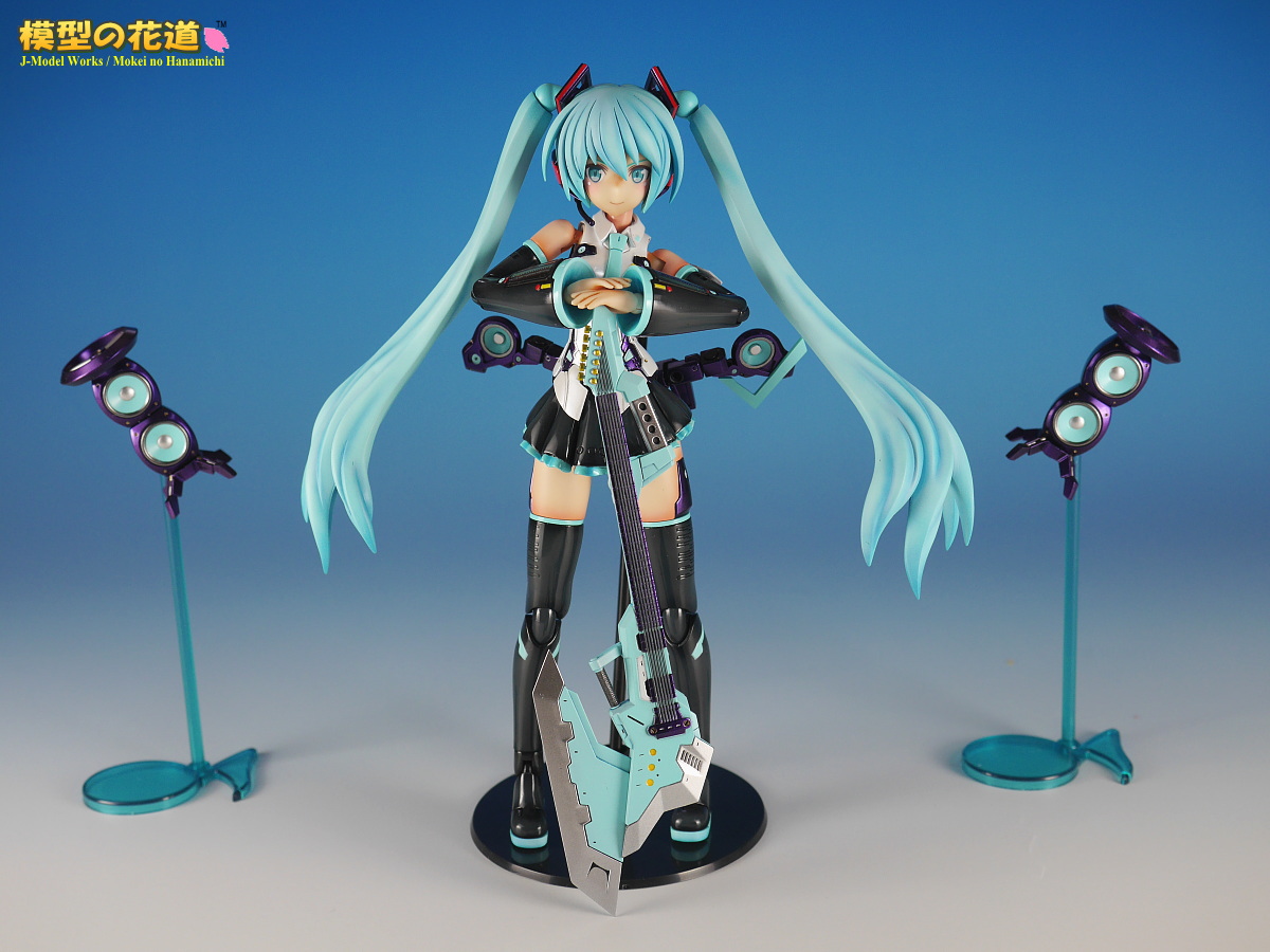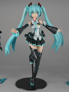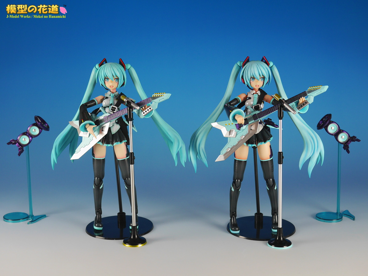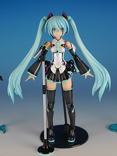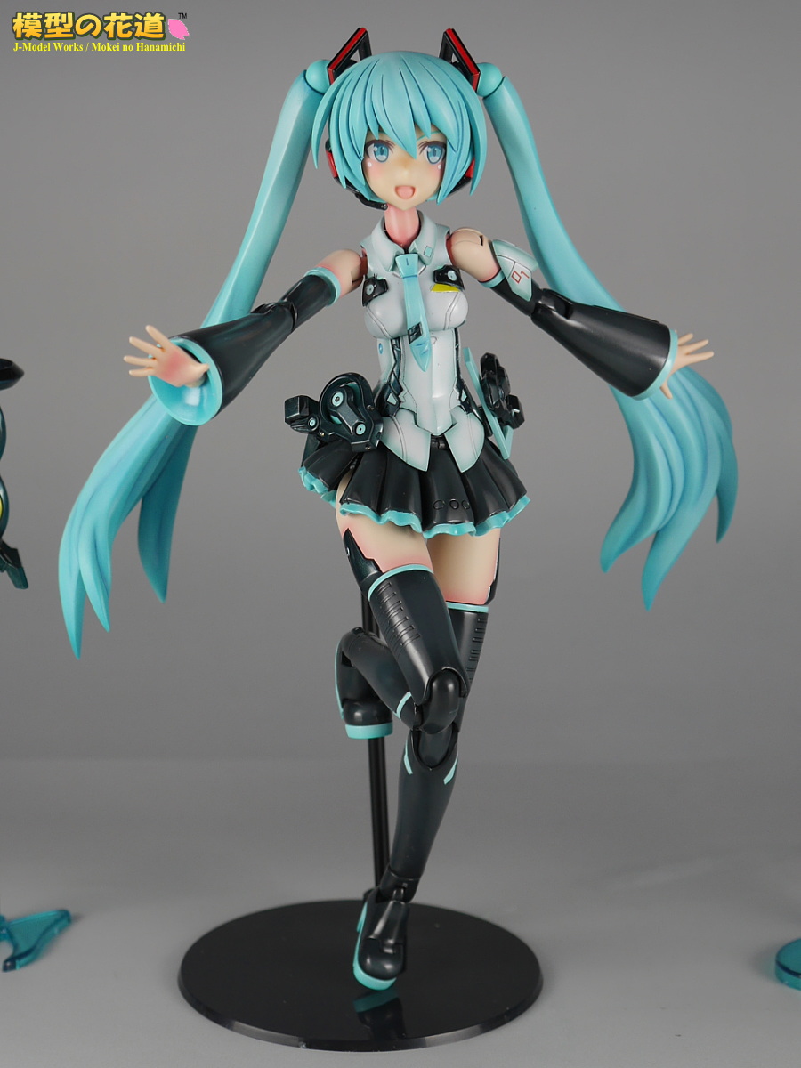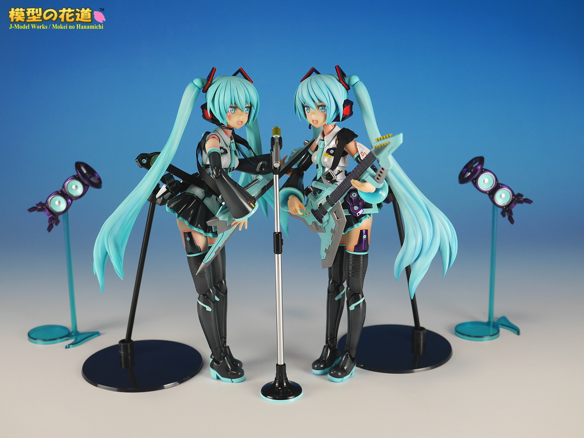 キットレビュー 今流行りのメカ少女系アクションプラモであり、さらに知名度も高い初音ミクという事で、コトブキヤのこのシリーズの製品に初めて手を出しました。 関節軸をポリキャップでなくABS製にすることでゆるみ対策にしていたり、これだけの関節軸を持ちながら、ほぼ修正いらずでグラつきも出ない部品精度には驚かされました。今のアクションプラモはこんなに良く出来てるんですね。 ただし作りやすいのは塗装をしないいわゆるパチ組みをした時の事でして、塗装を施す場合は並以上に手のかかるキットだという事がわかりました。 まず今時部品に離型剤が残っているので洗剤で洗わないと塗料のノリが悪い、ABS製パーツが大量にあり、下地にプライマーを吹かないと同じく塗料のノリが悪い、模型用うすめ液はABSを脆くする、関節軸まで塗装すると、その厚みでたちまちハマらなくなる、もしくはキツくて無理に動かすと破損の恐れがあるので塗料を落とす必要があるなど、スケモと違って気を使わねばならない個所がかなりあります。 ブログにもパーツレビューを載せてますのでご覧ください。 コトブキヤ フレームミュージック・ガール 初音ミク レビュー (2018-11-29) フレームミュージック・ガール 初音ミク 【Amazon】 M.S.G モデリングサポートグッズ ウェポンユニット05 ライブアックス 【Amazon】 コトブキヤ フレームミュージック・ガール 初音ミク 製作記 FAGなどのコトブキヤの美少女アクションプラモシリーズは従妹の長女ちゃんが好きでいつもはパチ組みで作っているので、一度きっちり作られたものをみせてあげたいと思い、彼女へのプレゼントという体で初音ミクを作りました。 調子に乗ってコトブキヤショップ限定版と通常版両方を買ったので2体作る事となり、しかも両者の製作にはちょっと間が空いたので、合計の製作期間は結構長くなってしまいました。 コトブキヤ フレームミュージック・ガール 初音ミク 製作記 その1 (2019-01-10) コトブキヤ フレームミュージック・ガール 初音ミク 製作記 その2 (2019-01-27) コトブキヤ フレームミュージック・ガール 初音ミク 製作記 その3 (2019-02-18) コトブキヤ フレームミュージック・ガール 初音ミク 製作記 その4 (2019-03-02) コトブキヤ フレームミュージック・ガール 初音ミク ひとりめ完成 (2019-03-03) コトブキヤ フレームミュージック・ガール 初音ミク 二人目 を作りました (2019-06-09)