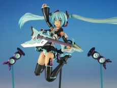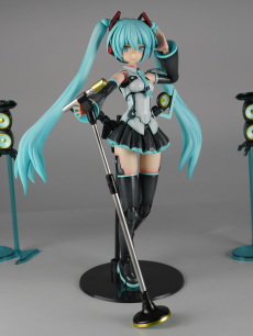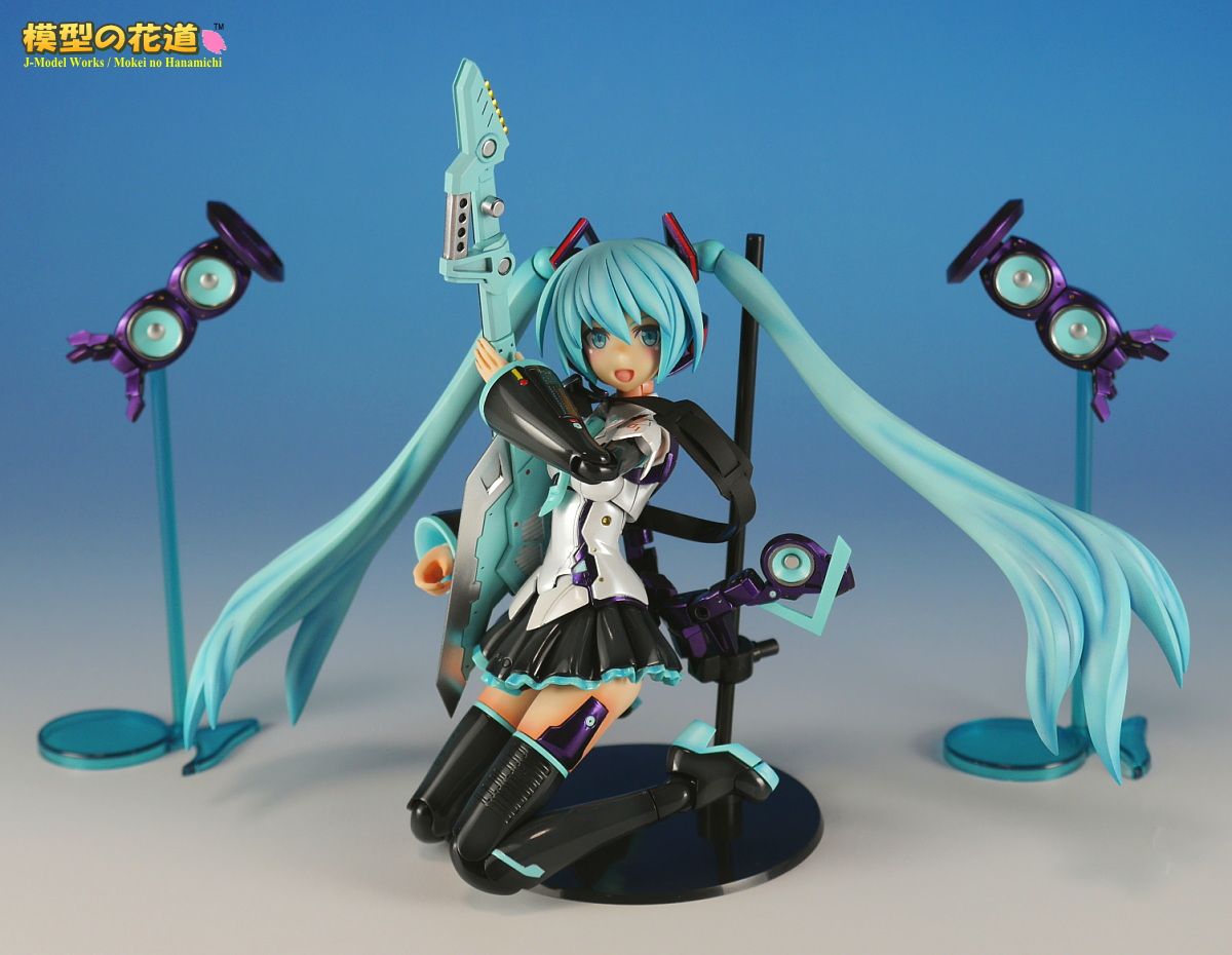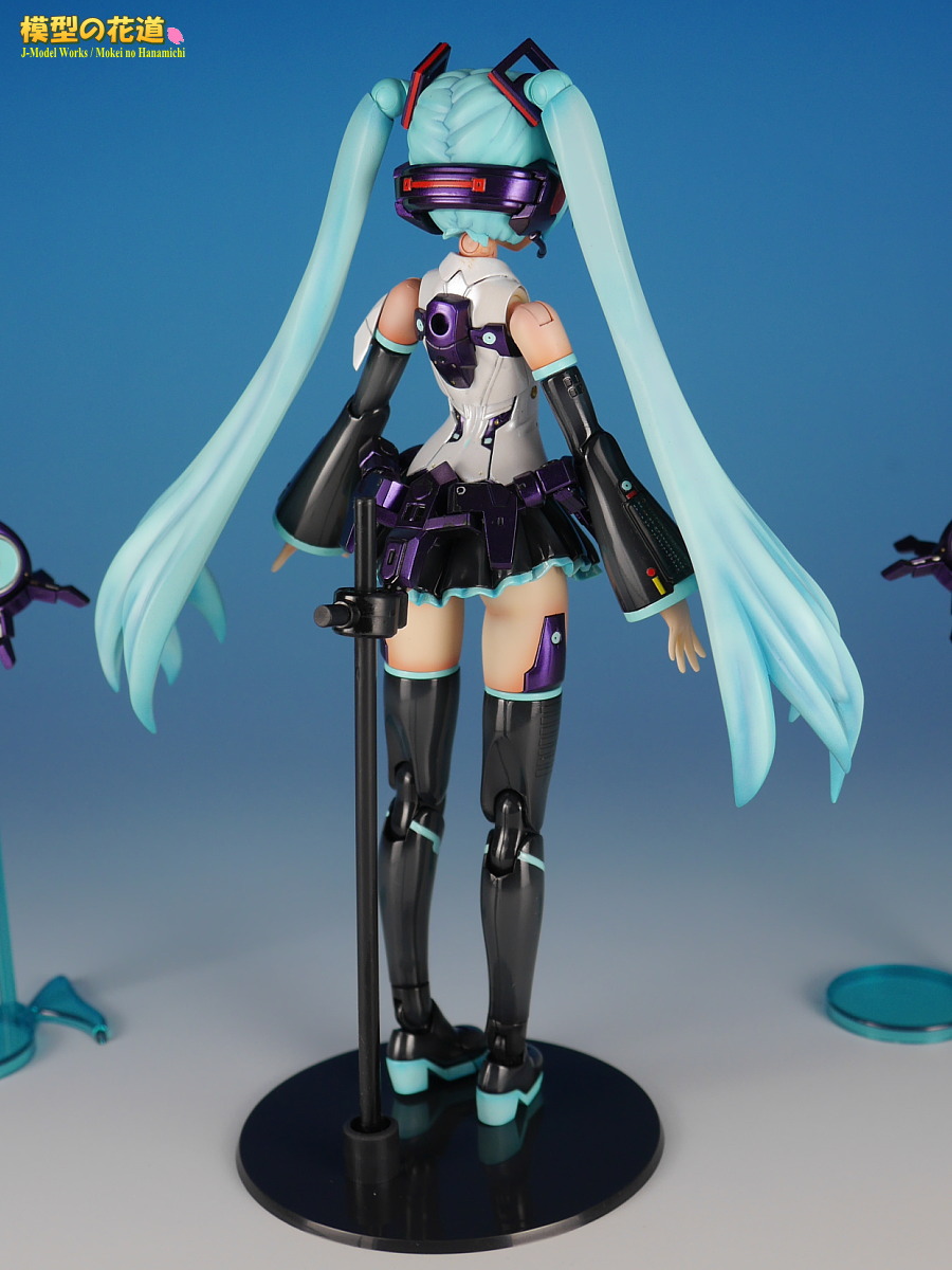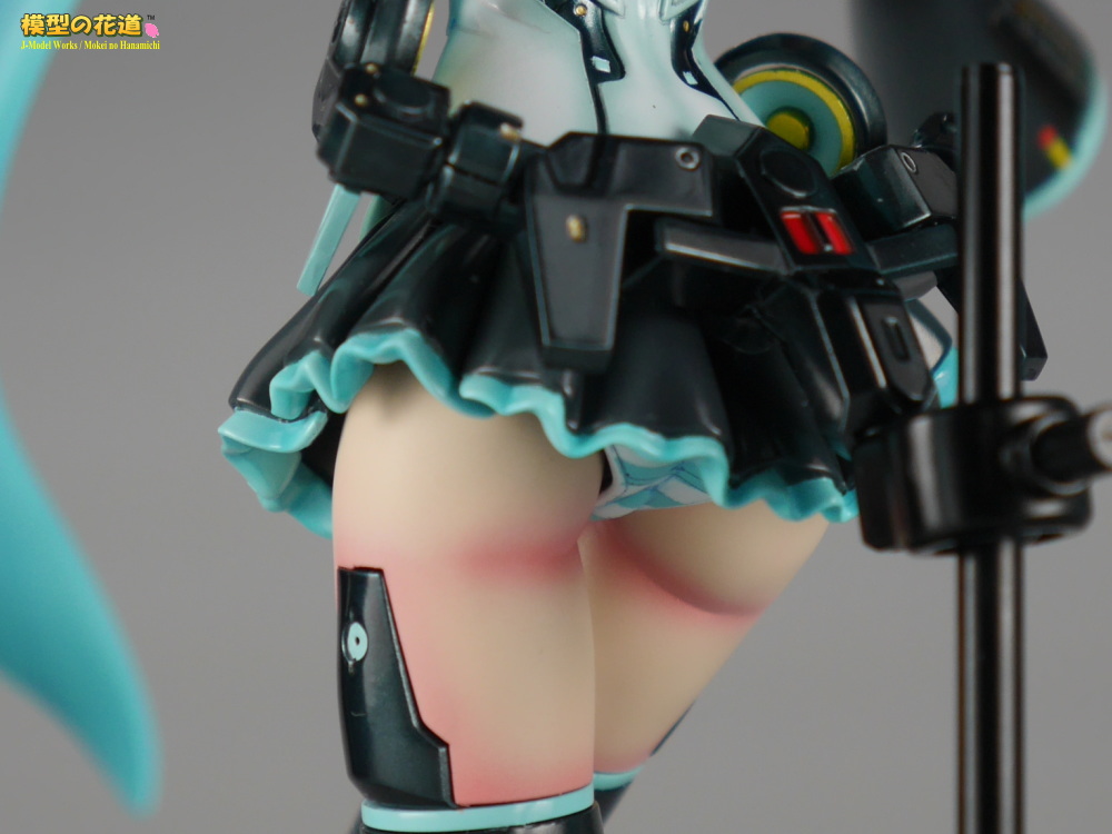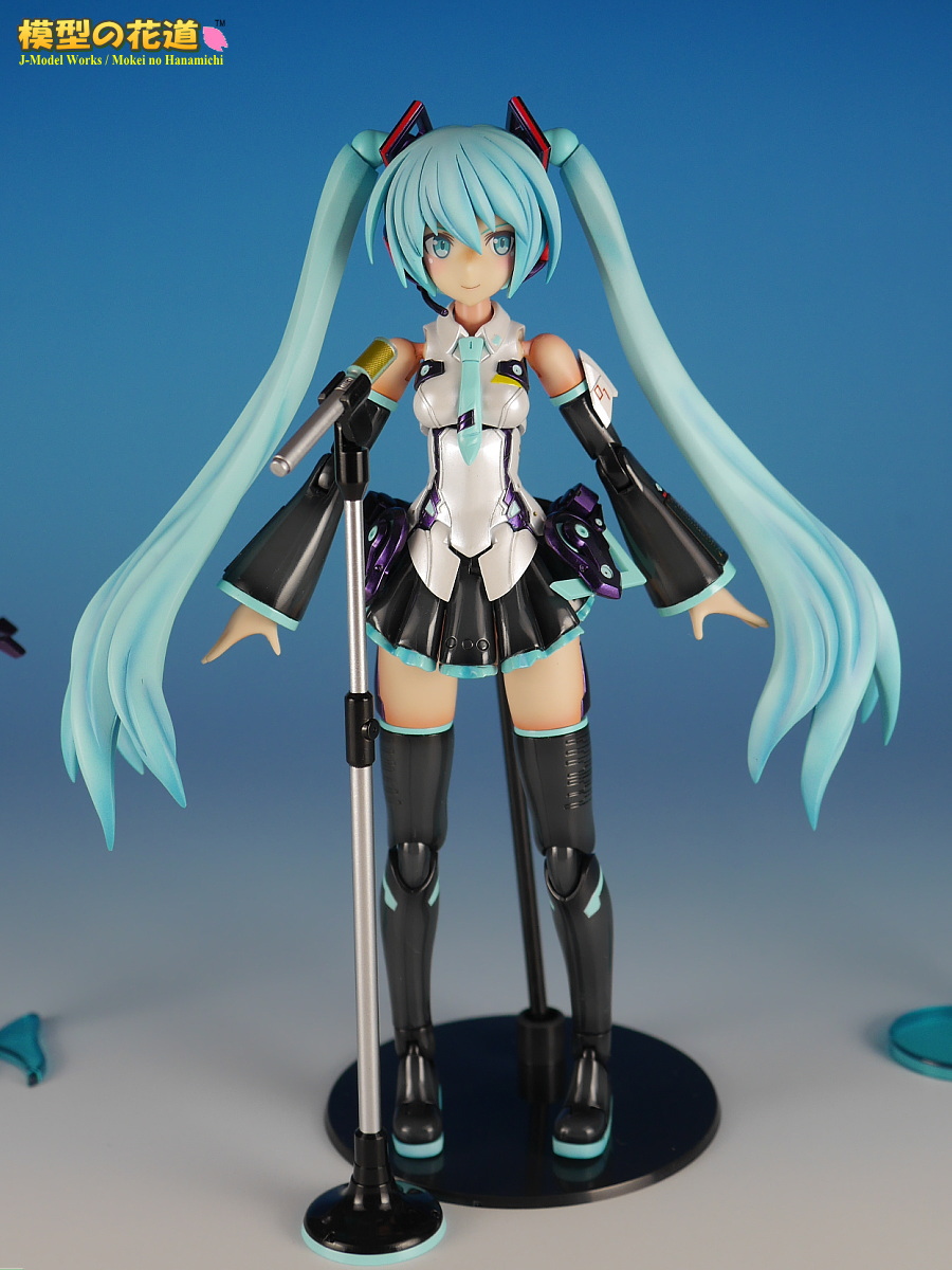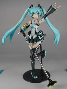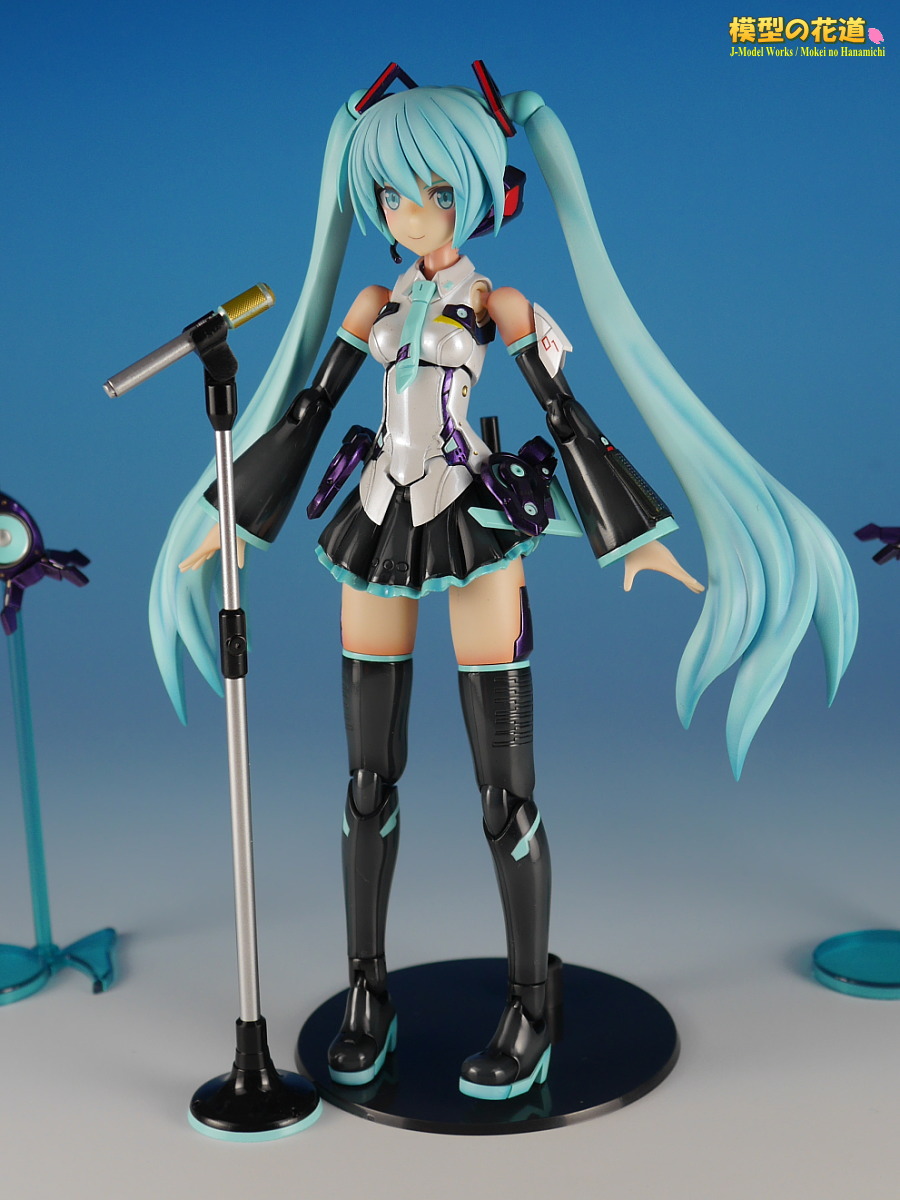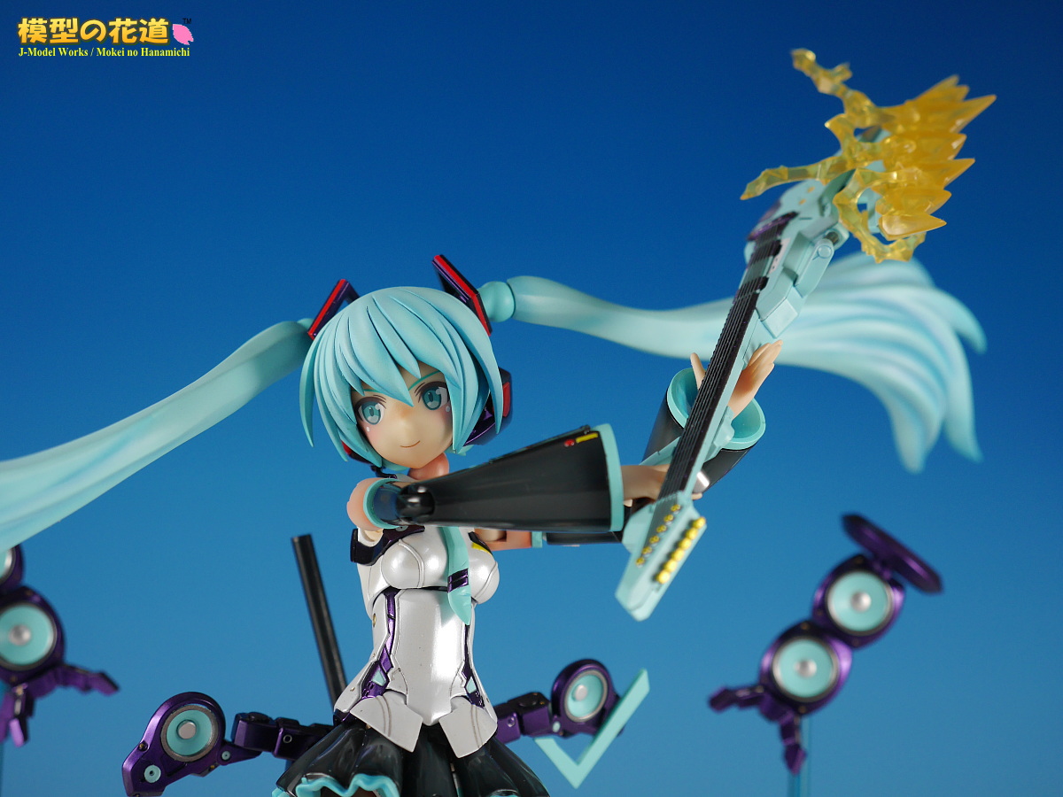 キットレビュー 今流行りのメカ少女系アクションプラモであり、さらに知名度も高い初音ミクという事で、コトブキヤのこのシリーズの製品に初めて手を出しました。 関節軸をポリキャップでなくABS製にすることでゆるみ対策にしていたり、これだけの関節軸を持ちながら、ほぼ修正いらずでグラつきも出ない部品精度には驚かされました。今のアクションプラモはこんなに良く出来てるんですね。 ただし作りやすいのは塗装をしないいわゆるパチ組みをした時の事でして、塗装を施す場合は並以上に手のかかるキットだという事がわかりました。 まず今時部品に離型剤が残っているので洗剤で洗わないと塗料のノリが悪い、ABS製パーツが大量にあり、下地にプライマーを吹かないと同じく塗料のノリが悪い、模型用うすめ液はABSを脆くする、関節軸まで塗装すると、その厚みでたちまちハマらなくなる、もしくはキツくて無理に動かすと破損の恐れがあるので塗料を落とす必要があるなど、スケモと違って気を使わねばならない個所がかなりあります。 ブログにもパーツレビューを載せてますのでご覧ください。 コトブキヤ フレームミュージック・ガール 初音ミク レビュー (2018-11-29) フレームミュージック・ガール 初音ミク 【Amazon】 M.S.G モデリングサポートグッズ ウェポンユニット05 ライブアックス 【Amazon】 コトブキヤ フレームミュージック・ガール 初音ミク 製作記 FAGなどのコトブキヤの美少女アクションプラモシリーズは従妹の長女ちゃんが好きでいつもはパチ組みで作っているので、一度きっちり作られたものをみせてあげたいと思い、彼女へのプレゼントという体で初音ミクを作りました。 調子に乗ってコトブキヤショップ限定版と通常版両方を買ったので2体作る事となり、しかも両者の製作にはちょっと間が空いたので、合計の製作期間は結構長くなってしまいました。 コトブキヤ フレームミュージック・ガール 初音ミク 製作記 その1 (2019-01-10) コトブキヤ フレームミュージック・ガール 初音ミク 製作記 その2 (2019-01-27) コトブキヤ フレームミュージック・ガール 初音ミク 製作記 その3 (2019-02-18) コトブキヤ フレームミュージック・ガール 初音ミク 製作記 その4 (2019-03-02) コトブキヤ フレームミュージック・ガール 初音ミク ひとりめ完成 (2019-03-03) コトブキヤ フレームミュージック・ガール 初音ミク 二人目 を作りました (2019-06-09)