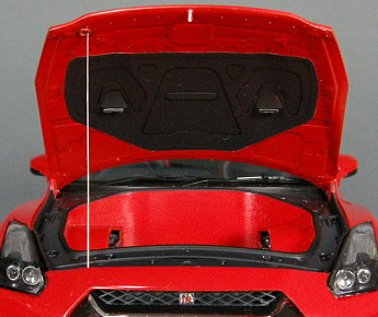 | エンジン搭載モデル追加を見据えた設計で、エンジンルームやボンネット裏のプレスパターンも再現。 |