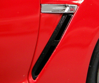 日産エンブレムとRバッジはインレットマークにロゴデカールを重ね貼る構造。 |