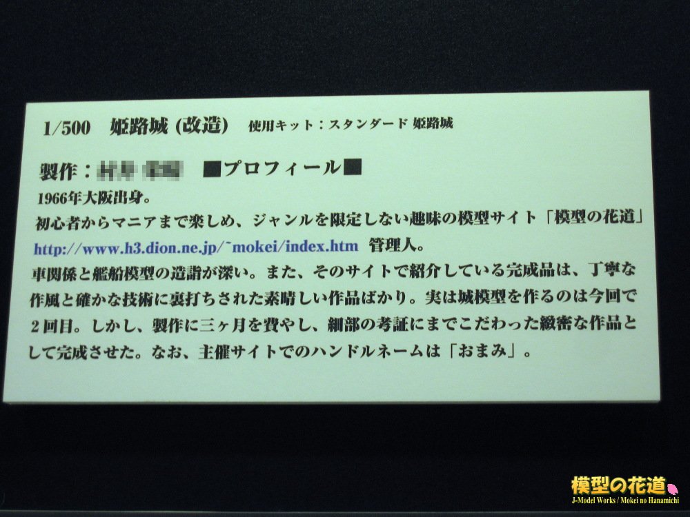 この姫路城はその後童友社さんにお貸しし、2011年の全日本模型ホビーショーの広告デザインに使われたり、会場内の同社のブースにて展示されました。