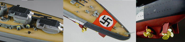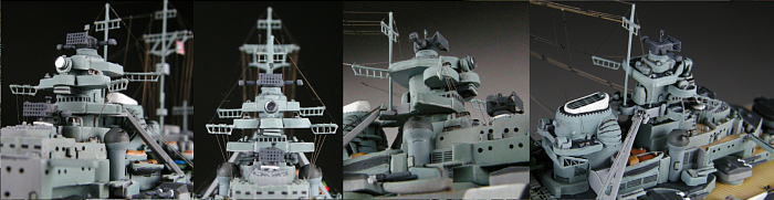 ドイツ艦独特の模型映えするデザインとカラーリングのところへ持ってきて、この1/1100ビスマルクはシリーズ中最高のディテールを持っており、総合的に今のところ頭一つ抜きんでたモデルです。それだけにディテールアップは気分がノリました。 |