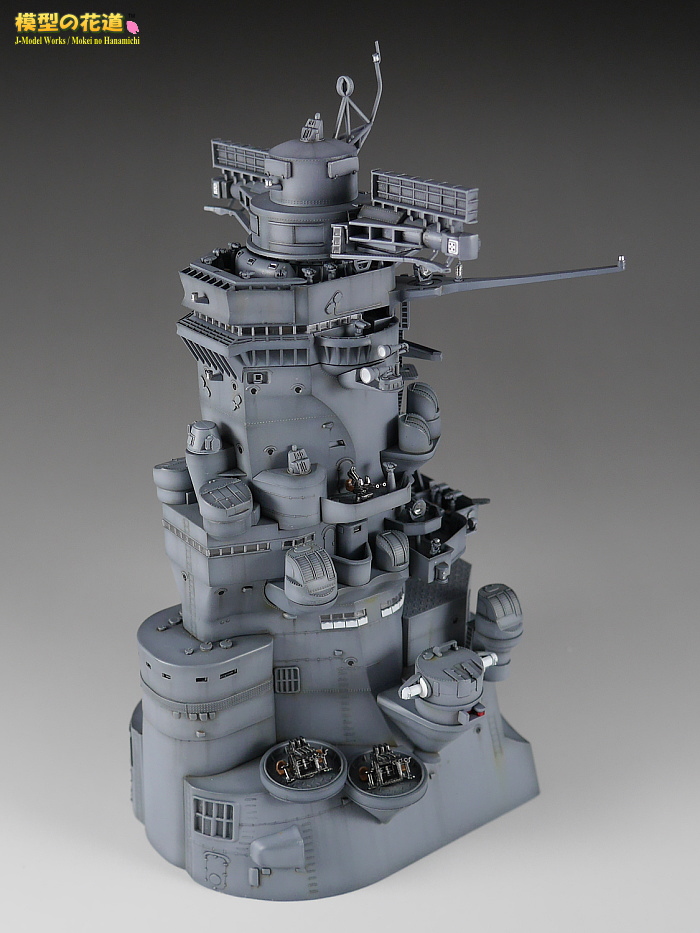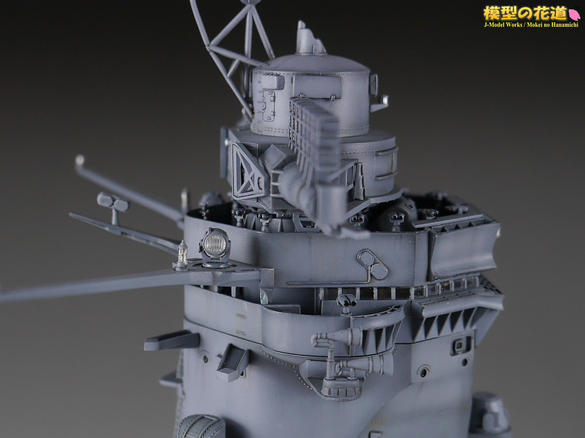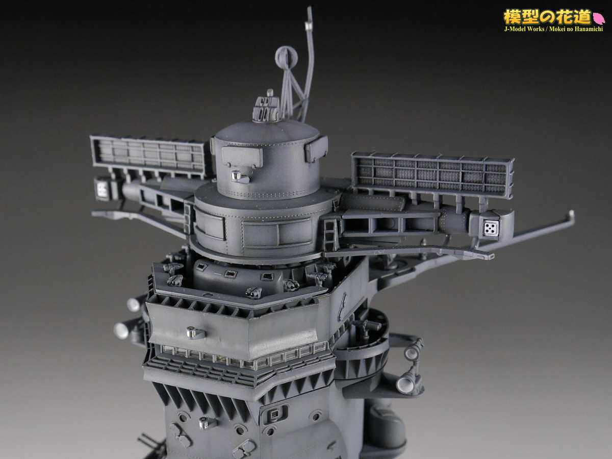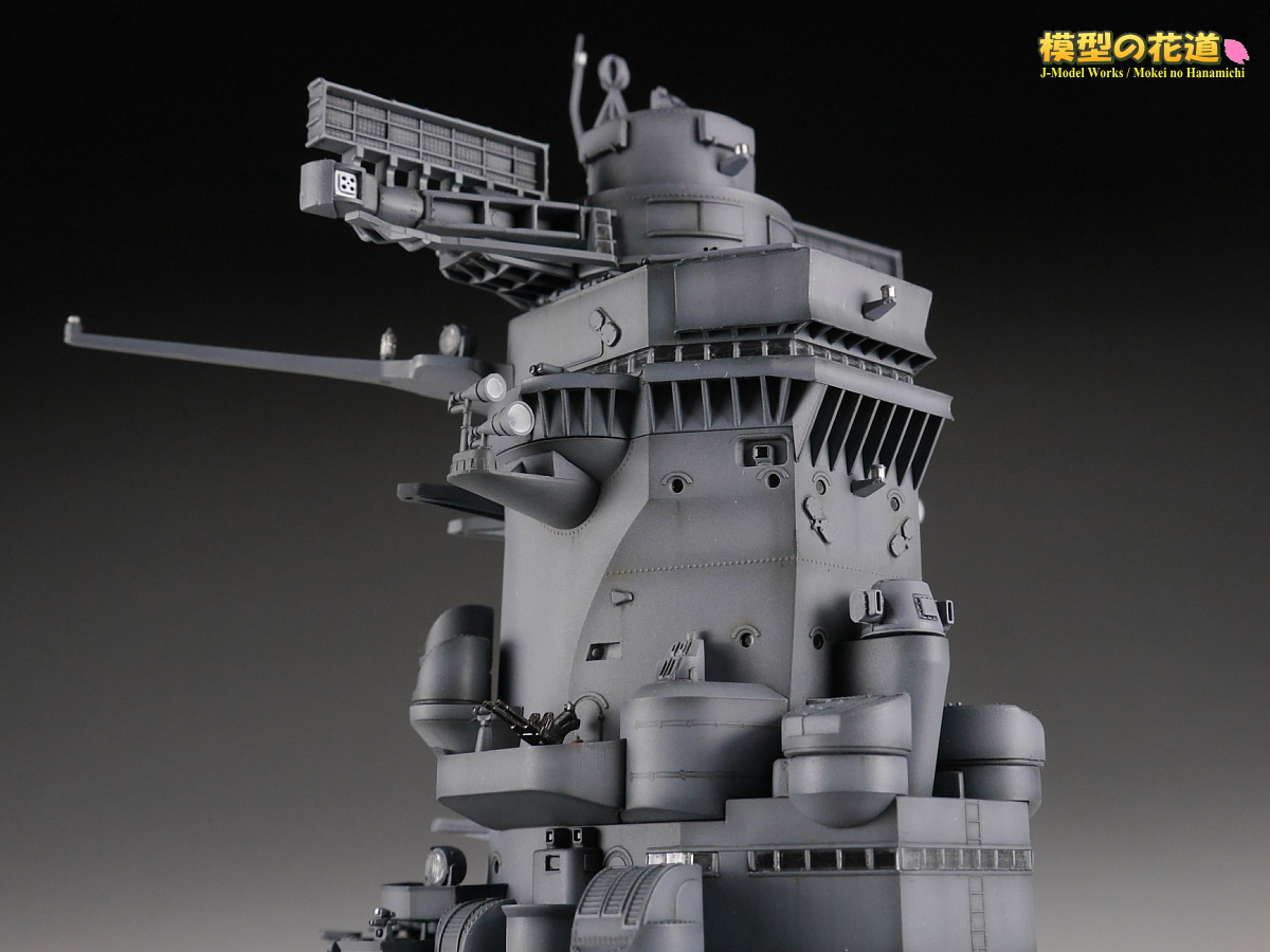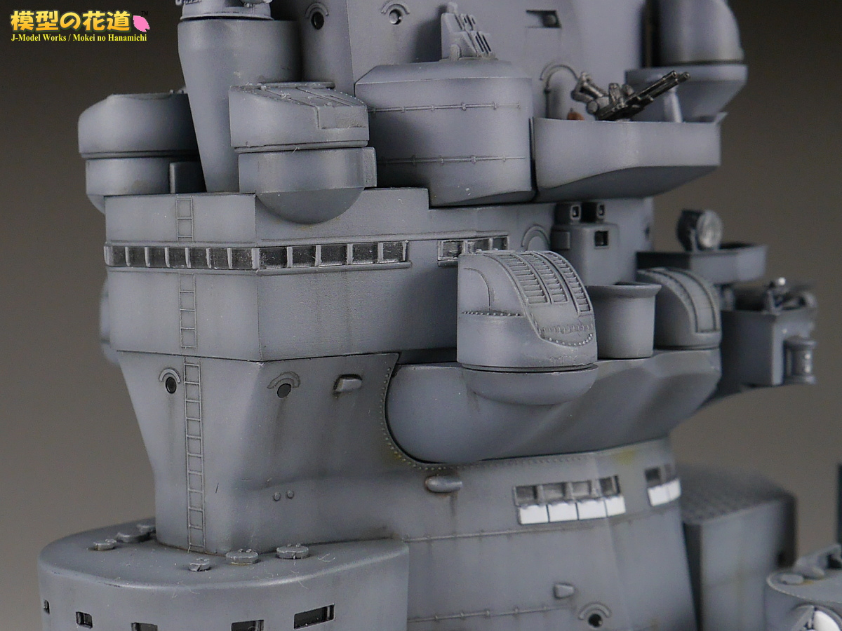 キットレビュー 1/200集める装備品シリーズの第1弾「大和主砲塔」の第二弾として発売されたのがこの「大和艦橋」です。組み立てみて感じたのは、その大きさによる迫力と解像度が上がった事によるディテールの細かさ、薄い部分はより薄く、エッジの効く部分はより利いているというモールドの鋭さ、さらには合わせ目が皆無に近いという設計の巧みさでした。 そして武蔵の海底探査で判明した最新の考証を反映してるため、発売が比較的新しい同社製品である艦NEXT1/700大和とディテールが結構違っており、新たな発見があります。 残念に感じた所は、1/200という大スケールにもかかわらず、手すりやラッタル、ジャッキステーといった繊細な部位が別パーツ化されておらず、省略もしくは本体側に彫刻という従来の1/700〜1/350と何ら変わらない表現になっている事です。フジミの今の成形技術なら出来ない筈はないので、この辺はスナップキットという製品コンセプト上の制限によるものだと思います。なのでここに物足りなさを感じる人は、エッチングパーツ付が後から発売されるのを期待して様子見の方が良いかもしれません。 とにかく今まで味わった事のない迫力にひたすら圧倒されたすばらしいキットでした。艦船モデラーなら一度はこの感覚を味わっていただきたいです。 レビューの詳細はブログに載せていますので、そちらのほうもぜひ併せてご覧ください。 フジミ 1/200 戦艦大和艦橋 テストショット入手 フジミ模型 1/200 集める装備品シリーズ No.2 戦艦大和 艦橋 【Amazon】 1/200 フジミ 戦艦大和 艦橋 製作記 フジミさんから発売前にテストショットを提供してもらい、それを組み立てました。キットの素性をわかりやすくるためディテールアップなしの素組です。その代わり塗装は手間をかけて、この大きさの大和の各面が間延びしないよう、黒立ち上げ塗装、ウェザリングなどで情報量を詰め込みました。 艦船模型というよりお城や高層建築物の模型を作ってる感覚近かったですね。 フジミ 1/200 戦艦大和艦橋を作る その1 フジミ 1/200 戦艦大和艦橋を作る その2 フジミ 1/200 戦艦大和艦橋を作る その3 《関連ページ》 フジミ 1/200 戦艦大和 中央構造 フジミ 1/200 戦艦大和 中央構造外郭 フジミ 1/200 戦艦大和 九四式46センチ3連装主砲塔 増設機銃付き
