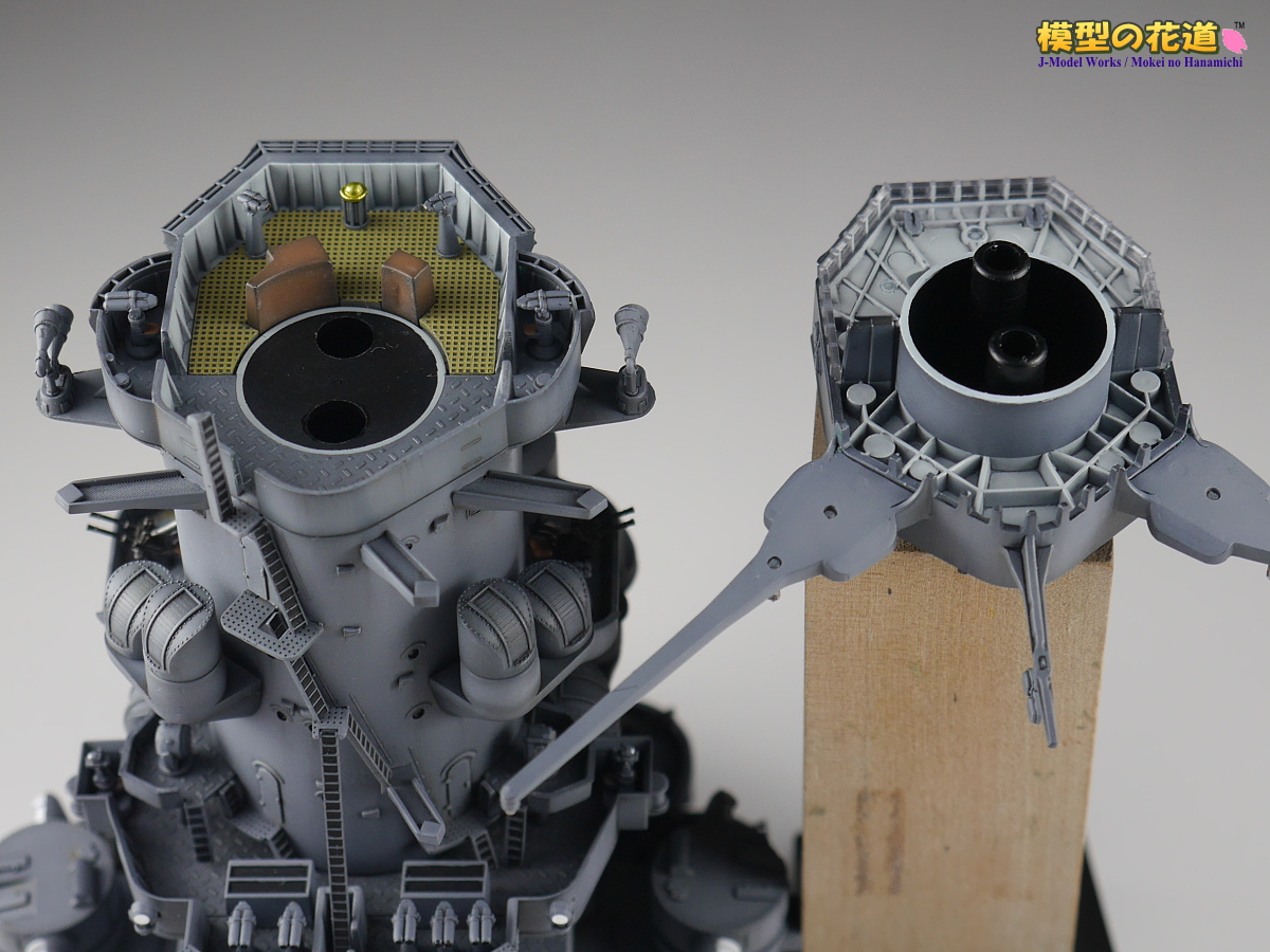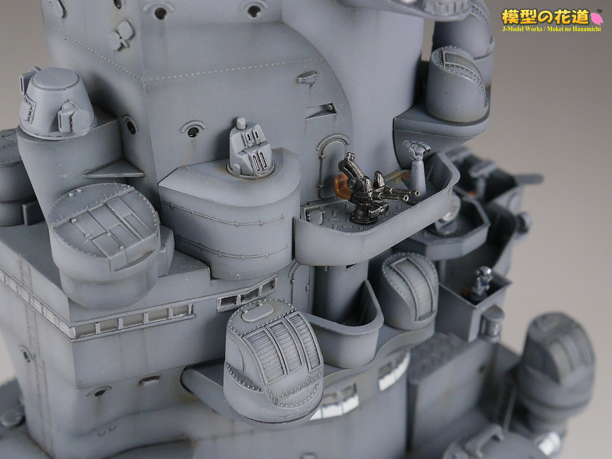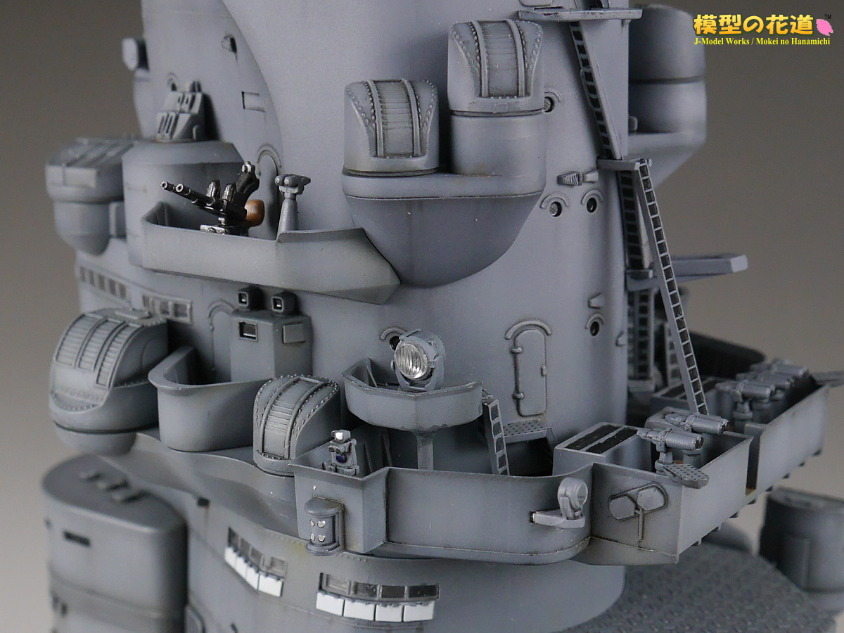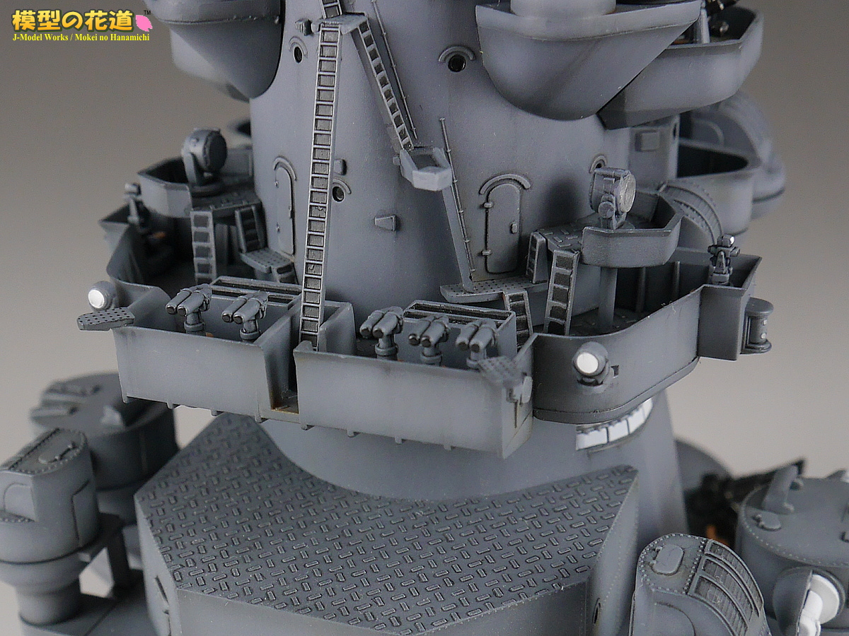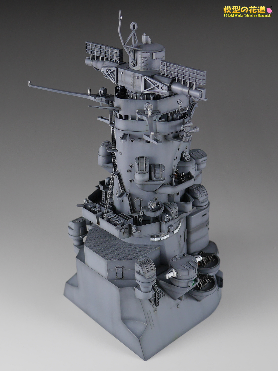 キットレビュー 1/200集める装備品シリーズの第1弾「大和主砲塔」の第二弾として発売されたのがこの「大和艦橋」です。組み立てみて感じたのは、その大きさによる迫力と解像度が上がった事によるディテールの細かさ、薄い部分はより薄く、エッジの効く部分はより利いているというモールドの鋭さ、さらには合わせ目が皆無に近いという設計の巧みさでした。 そして武蔵の海底探査で判明した最新の考証を反映してるため、発売が比較的新しい同社製品である艦NEXT1/700大和とディテールが結構違っており、新たな発見があります。 残念に感じた所は、1/200という大スケールにもかかわらず、手すりやラッタル、ジャッキステーといった繊細な部位が別パーツ化されておらず、省略もしくは本体側に彫刻という従来の1/700〜1/350と何ら変わらない表現になっている事です。フジミの今の成形技術なら出来ない筈はないので、この辺はスナップキットという製品コンセプト上の制限によるものだと思います。なのでここに物足りなさを感じる人は、エッチングパーツ付が後から発売されるのを期待して様子見の方が良いかもしれません。 とにかく今まで味わった事のない迫力にひたすら圧倒されたすばらしいキットでした。艦船モデラーなら一度はこの感覚を味わっていただきたいです。 レビューの詳細はブログに載せていますので、そちらのほうもぜひ併せてご覧ください。 フジミ 1/200 戦艦大和艦橋 テストショット入手 フジミ模型 1/200 集める装備品シリーズ No.2 戦艦大和 艦橋 【Amazon】 1/200 フジミ 戦艦大和 艦橋 製作記 フジミさんから発売前にテストショットを提供してもらい、それを組み立てました。キットの素性をわかりやすくるためディテールアップなしの素組です。その代わり塗装は手間をかけて、この大きさの大和の各面が間延びしないよう、黒立ち上げ塗装、ウェザリングなどで情報量を詰め込みました。 艦船模型というよりお城や高層建築物の模型を作ってる感覚近かったですね。 フジミ 1/200 戦艦大和艦橋を作る その1 フジミ 1/200 戦艦大和艦橋を作る その2 フジミ 1/200 戦艦大和艦橋を作る その3 《関連ページ》 フジミ 1/200 戦艦大和 中央構造 フジミ 1/200 戦艦大和 中央構造外郭 フジミ 1/200 戦艦大和 九四式46センチ3連装主砲塔 増設機銃付き