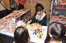 スイーツデコレーションコーナーでは、スイーツデコ作家山田けいさんによる実演や、まもなく発売の「ホイップの達人(ホイップクリーム)」を使った製作体験コーナーが用意されてました。