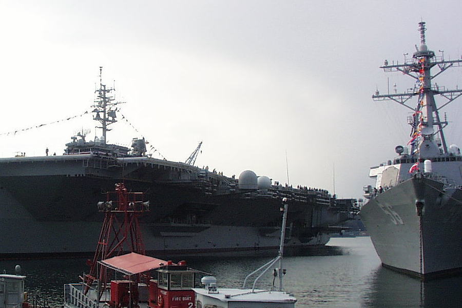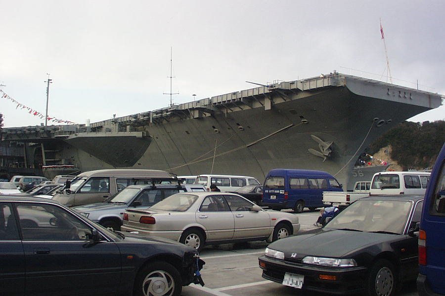 1999年2月、横須賀米海軍基地フレンドシップデーにて一般公開された空母キティホークの画像です。前年98年に空母インディペンデンスに代わって日本に配備されたばかりの頃で、他の米艦艇も一緒に公開されました。