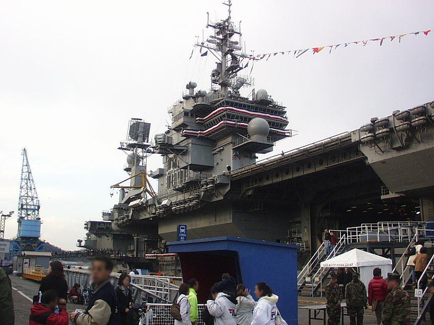 キティホーク級はフォレスタル級の改造強化型で米国最後の通常動力推進空母。その1番艦キティホークは1961年に就役してからベトナム戦争やイラク攻撃など多くの作戦に参加し、艦齢47年になる米海軍最古参艦です。 CV63 キティホーク公式HP http://www.kittyhawk.navy.mil/