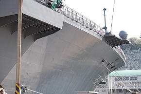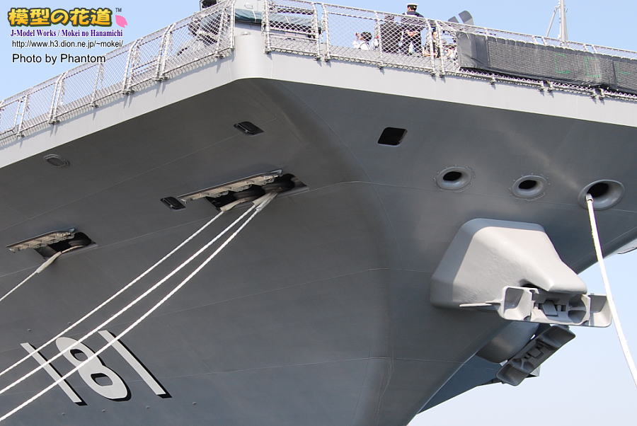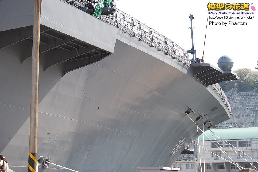 左舷側のアングルドデッキ状の張り出しの外側には、米空母などと同じ様にキャットウォークがあります。(4枚目)