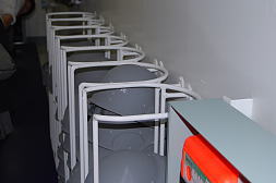さて、乗員の方の説明によると、この区画は各種OA機器の設置や通信回線の導設、人員の収容など文字通り多目的な使用を想定した区画で、災害時や海外派遣時の臨時指揮所や自治体の事務所としての機能を持たせることも可能との事。