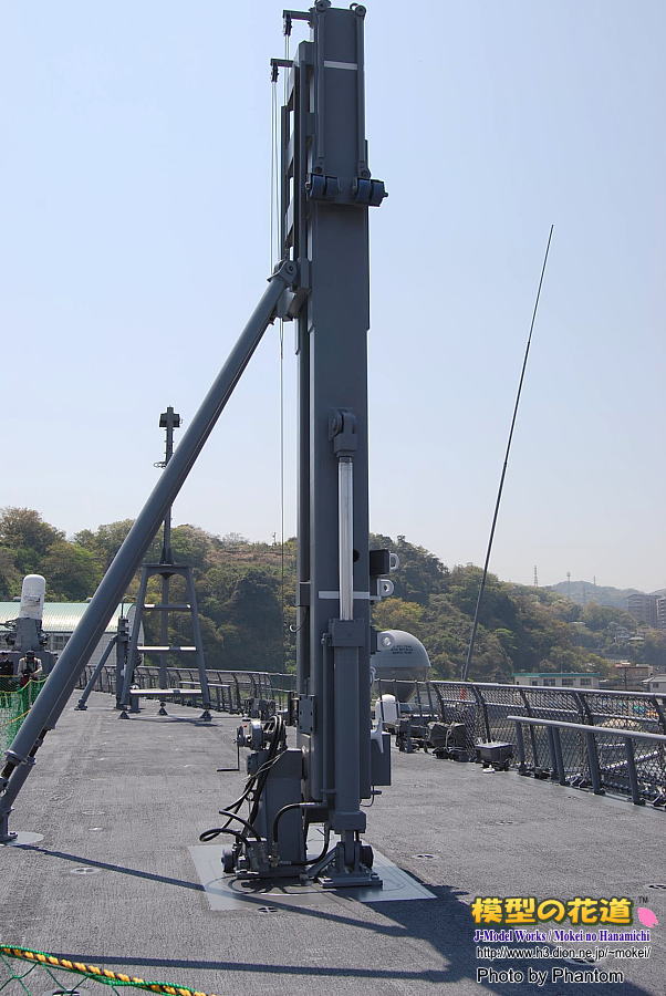 また、デッキの面積に余裕があるためか、従来の護衛艦では上構の横にある受給ポストがこんな風に突っ立ってます。(3枚目)