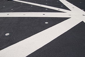 凄まじく強烈な縮緬状の処理がなされています。想像するに、幅広のローラー状の道具で施工したのではないかと思うのですが…。歩き回った感触としては、陸上のトラックに敷き詰めてあるアンツーカーのそれが近い様な気がします。